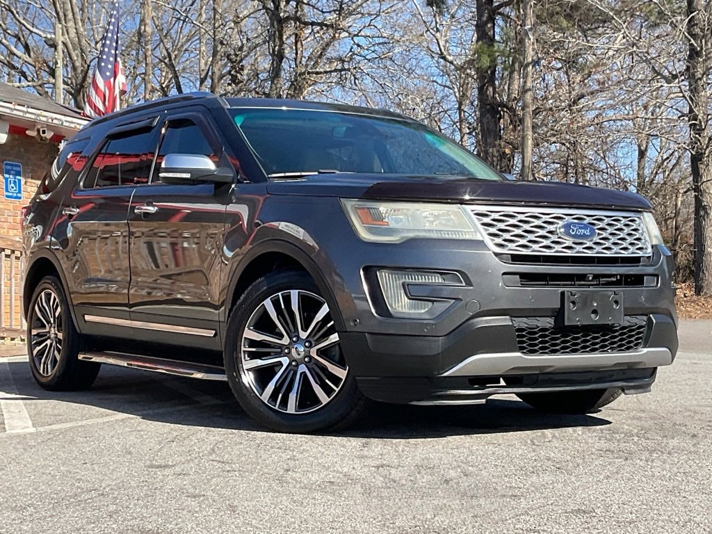 Price Shown Includes: $1000 Trade Assist $1000 Other Incentives Enjoy incredible luxury and first-class style in our 2017 Ford Explorer Platinum 4WD presented in Magnetic! Powered by a 3.5 Liter V6 offering 290hp paired with a 6 Speed SelectShift Automatic transmission. Our Four Wheel Drive SUV rewards you with up to 24mpg on the road while delivering responsive steering and smooth handling that will have you looking for reasons to get out and find adventure. This Explorer grabs attention with an upscale, bold design emphasized by beautiful wheels and a distinct grille. You'll appreciate a wealth of amenities inside this Platinum, including a remote start, a reverse sensing system, ambient lighting, and a 3rd-row power fold 50/50 split-folding bench seat. Settle into the leather multi-contour front seats with quilted inserts and enjoy the open feeling provided by the twin-panel sunroof while gripping the heated steering wheel. Equipped with Sony Audio with Clear Phase and Live Acoustic, full-color navigation, and SYNC 3 voice command with a prominent display, maintaining a safe connection is a breeze. Peach State Motors 5799 Highway 92 Acworth, Ga 30102 678-273-3391 http://www.peachstatemotors.com https://goo.gl/maps/6CoseboKSXwriEKA8