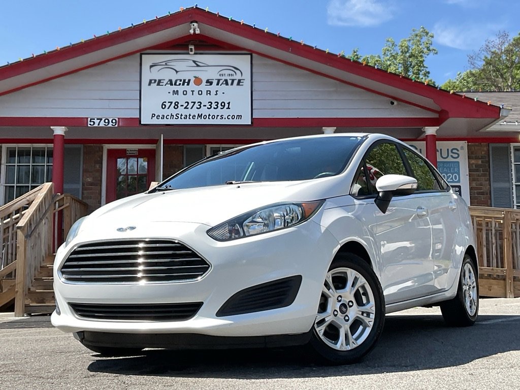 Price Shown Includes: $1000 Trade Assist $1000 Other Incentives Admire the feisty stance of our 2016 Ford Fiesta SE in eye-catching White Platinum! Powered by a 1.6 Liter 4 Cylinder that offers 120hp connected to a 6 Speed Automatic transmission handles smoothly. This Front Wheel Drive Sedan offers a great ride, an amazing look, and nearly 39mpg on the highway. Enjoy smart styling with clean lines and sporty features like fog lamps, a chrome grille, and a rear spoiler. You will love the edgy, modern features the Fiesta SE offers on the interior! Ford Sync App Link will keep you in touch and in tune with all the latest news, weather, and music. Easy-to-use controls, a 6-speaker stereo system, extra power points for electronics, ambient lighting, comfy upgraded cloth bucket seats, and a leather-wrapped tilt and telescoping steering wheel are just a few of the great features this Fiesta provides. Regarding safety, our Ford received top ratings with safety features that include AdvanceTrac electronic stability control, seven airbags, a tire pressure monitoring system, ABS, hill launch assist, and Ford's SOS post-crash alert system. This Fiesta SE is one smart, lively car that is fun to drive and saves money at the pump. You have made an excellent choice! Save this Page and Call for Availability. Peach State Motors 5799 Highway 92 Acworth, Ga 30102 678-273-3391 http://www.peachstatemotors.com https://goo.gl/maps/6CoseboKSXwriEKA8
