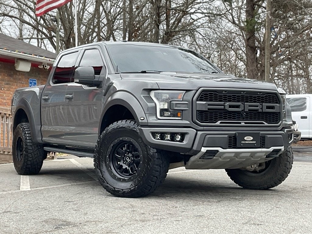 Price Shown Includes: $1000 Trade Assist $1000 Other Incentives Nearly unstoppable, our 2018 Ford F-150 SVT Raptor SuperCrew 4X4 in Lead Foot takes the fast lane to the world's most challenging trails! Motivated by a High Output Twin-TurboCharged 3.5 Liter EcoBoost V6 that generates 450hp connected to a paddle-shifted 10 Speed Automatic transmission to keep that power close at hand. Our Four Wheel Drive truck is ready for the road, but it shines when you leave the beaten path behind. At that point, you can rely on features like a six-mode Terrain Management System, FOX Racing Shox, a Torsen front differential, an electronic locking rear diff, and a Torque on Demand transfer case for hardcore off-road performance. And you'll immediately recognize our Raptor anywhere with its signature grille, LED lighting, running boards, spray-on Bedliner, muscular fenders, and overall in-your-face attitude! Once inside our trail-friendly Raptor cabin, you're ready for action in the exclusive Raptor leather seats featuring 10-way power, unique bolsters, and the leather-wrapped steering wheel. Cruise control and a SYNC voice-activated communication and entertainment system with Bluetoothr and a six-speaker sound system are also available. Peach State Motors 5799 Highway 92 Acworth, Ga 30102 678-273-3391 http://www.peachstatemotors.com https://goo.gl/maps/6CoseboKSXwriEKA8