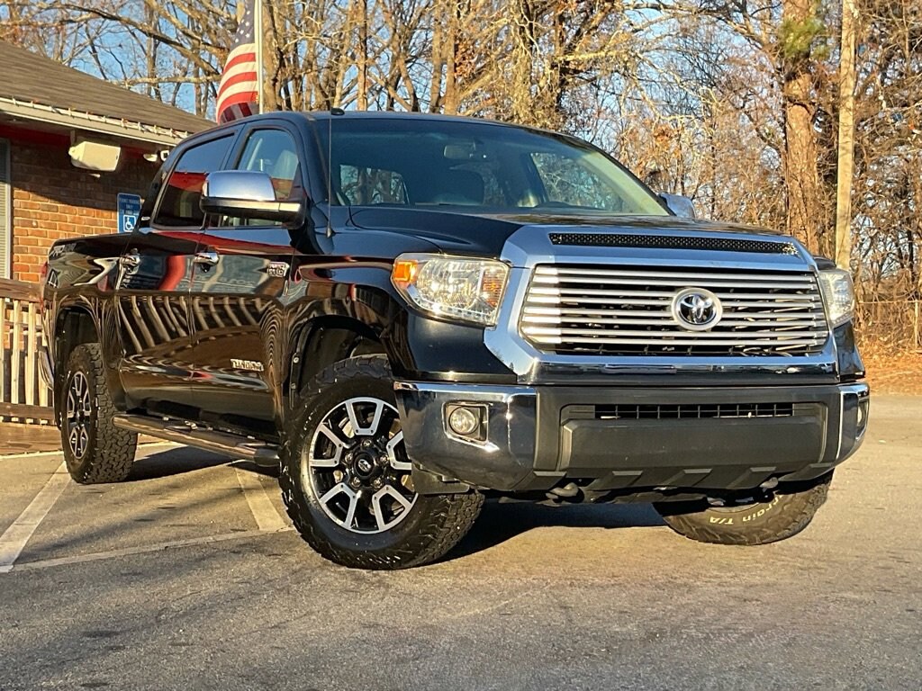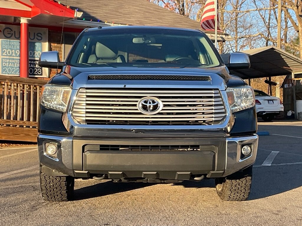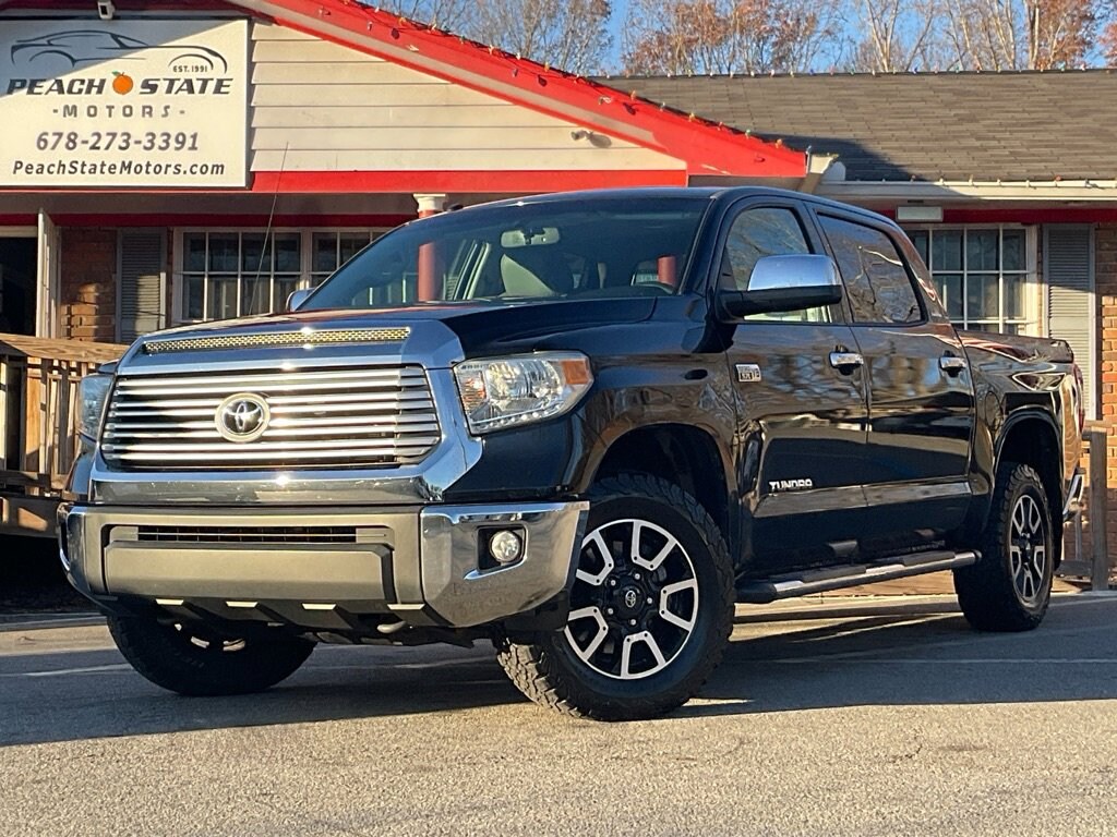 Price Shown Includes: $1000 Trade Assist $1000 Other Incentives Every road leads to adventure in our bold, beautiful, and athletic 2014 Toyota Tundra Limited Crew Cab 4X4 presented here in Attitude Black Metallic. Motivated by a 5.7 Liter iForce V8 that offers 381hp tethered to a 6 Speed Automatic transmission. This Four Wheel Drive team provides 18mpg on the road, off-road capabilities, and acceleration that will get your blood pumping! You'll feel right at home whether gliding down the freeway, tackling trails, or pounding snowdrifts. Appreciate Bilstein shocks, TRD wheels, tires, and front skid plates. The cabin's impressive craftsmanship and ergonomic design of the cabin feature luxe heated leather seats, premium materials on stylish gauges, and practical buttons and knobs that are refreshingly easy to use. A convenient touchscreen display with Entune premium audio and navigation keeps you connected to work and play comfortably. Just try to suppress the smile on your face as this truck works smoothly through its gears, propelling you and your family down the road while turning heads. This Toyota leads the pack safely thanks to intelligently designed ABS, stability/ traction control, trailer sway control, and numerous airbags. You deserve an attractive Tundra Limited that works hard for you. Peach State Motors 5799 Highway 92 Acworth, Ga 30102 678-273-3391 http://www.peachstatemotors.com https://goo.gl/maps/6CoseboKSXwriEKA8