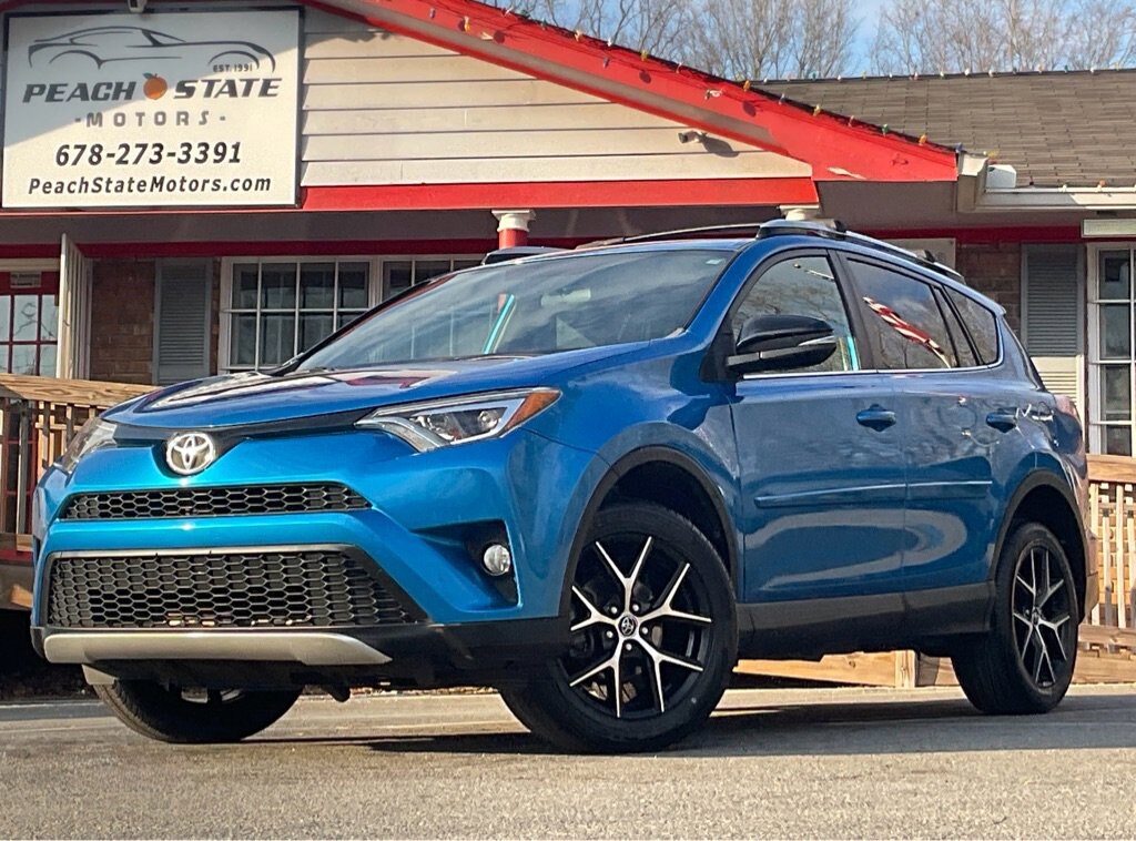 Price Shown Includes: $1000 Trade Assist $1000 Other Incentives Stylish, intelligent, and adventurous, our 2016 Toyota RAV4 SE AWD in Electric Storm Blue is an intelligent choice! Powered by a 2.5 Liter 4 Cylinder that offers 172hp teamed with a paddle-shifted 6 Speed Automatic transmission. With this All Wheel Drive SUV, enjoy this smooth ride and score nearly 29mpg on the highway. Imagine yourself comfortably cruising down the road in style in our RAV4. Our family-friendly machine has an attractive sculpted exterior accented by LED daytime running lights, LED tail lamps, 18-inch sport alloy wheels, and a distinct grille. Inside our SE, enjoy cavernous cargo space and a lowered floor that makes it easier for you to load up your gear and for the family dog to jump right in. Settle in and relax in the supportive heated seats, open the sunroof, and enjoy amenities such as push-button start, Entune Audio Plus, full-color navigation, iPod connectivity, Bluetoothr, Siri Eyes Free, available satellite radio, and more! You'll feel safe and secure knowing that this sturdy Toyota SUV will protect you and your family with ABS, stability/traction control, whiplash-reducing front headrests, a rearview camera, and plenty of airbags. Peach State Motors 5799 Highway 92 Acworth, Ga 30102 678-273-3391 http://www.peachstatemotors.com https://goo.gl/maps/6CoseboKSXwriEKA8